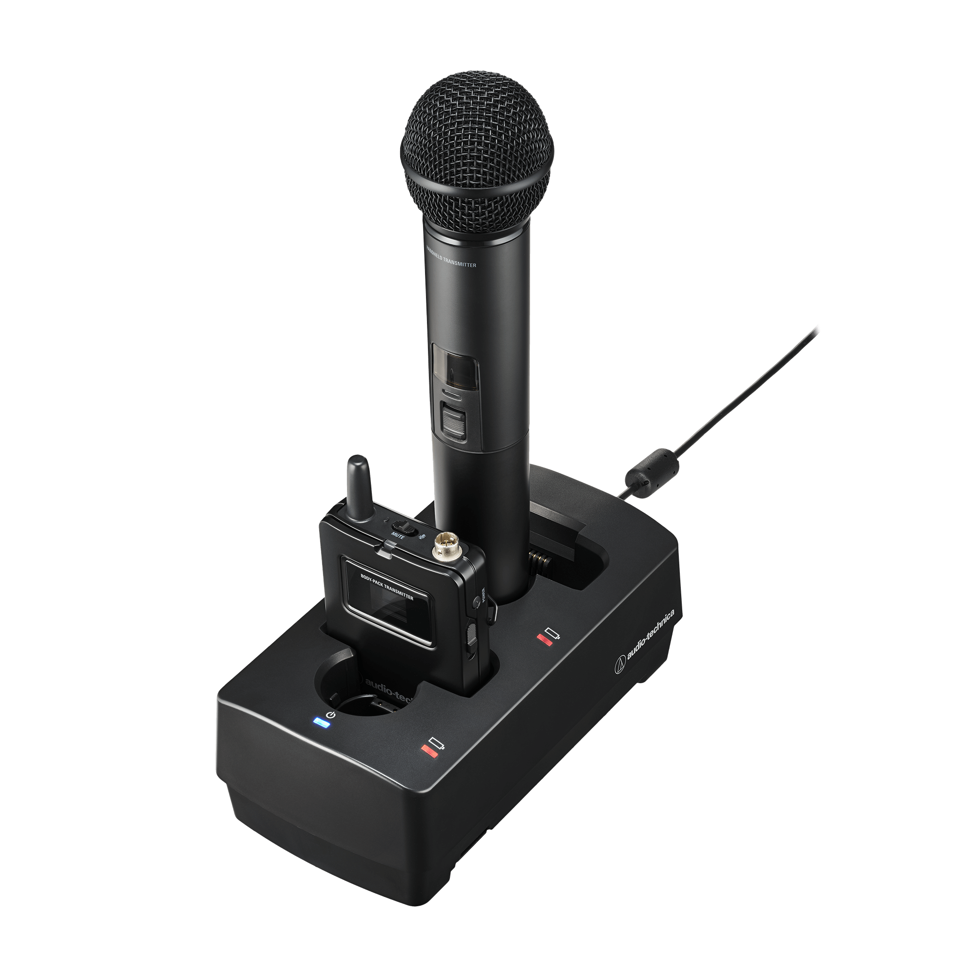 - 持式和腰掛皆可使用雙插槽充電器充電,平面麥克風和鵝頸麥克風支援透過 USB-C 充電 9. 配備HD模式,可進行多頻率操作(最大20ch操作,備用頻率總計40ch) 10. 可以使用無線管理器應用程式進行設定和監控