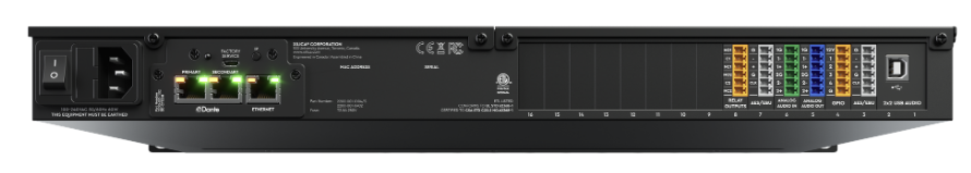 - 支援 iOS / Android 行動控制,並可整合 Crestron 與 AMX 控制系統。 單一主機最高可支援 32 聲道本地類比音訊,或 64 路本地 GPIO,已足以應付大多數中型應用需求。如需更多 I/O,也可透過 Dante 搭配 Solaro XIO 16 擴充器 進一步擴充。