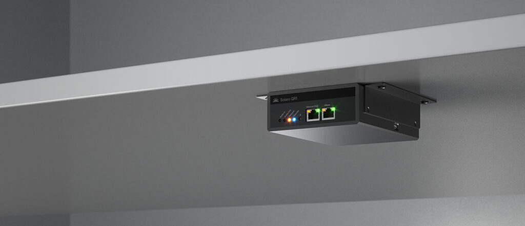 Solaro 專業聲音處理系統,設備配備可符合各種空間大小的專業音訊處理晶片。依照場地和規劃的需求可選擇把處理設備分散放在會議室中裡,也可以將主機集中放在 IT 機房。 Solaro QR1 支援 PoE 供電,可以安裝在桌子底下、螢幕後面,或是藏在天花板裡;而 Solaro FR1 則適合需要處理很多通道、或是分散式系統的應用。